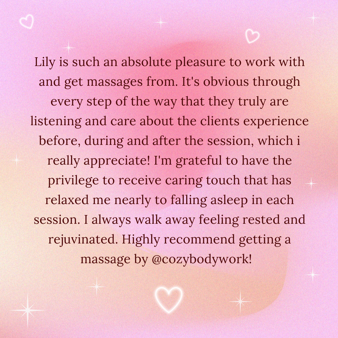 testimonials about our session(s) are deeply appreciated – please send anytime through email or text!